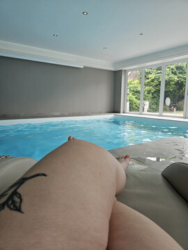 Soft thighs. Cold water. Naughty thoughts. Pool days hit different when you’ve got a view like this